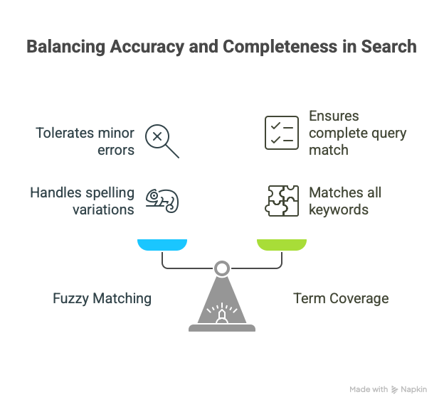 Individually, both fuzzy matching and term coverage improve search flexibility – but together, they offer a powerful solution for product identification. Fuzzy matching fixes the small mistakes in each word, while term coverage makes sure the overall query’s meaning is captured by requiring all (or most) keywords to appear. This one-two punch mimics how a helpful human clerk might interpret a request: forgiving about spelling, but attentive to all the details mentioned.