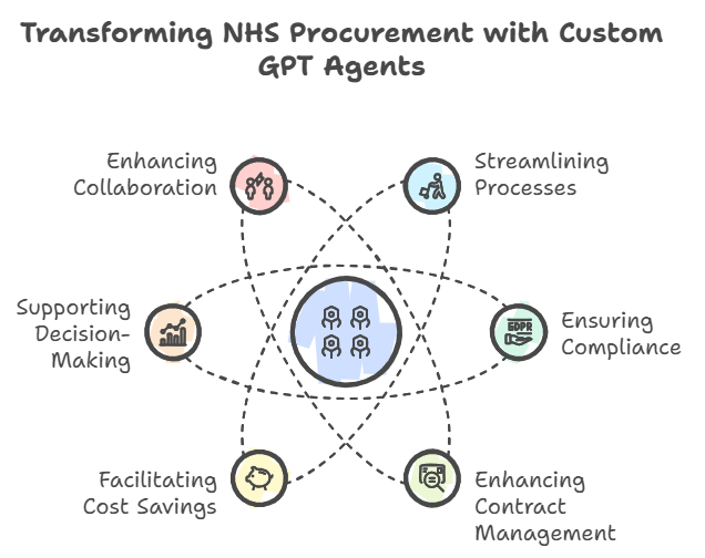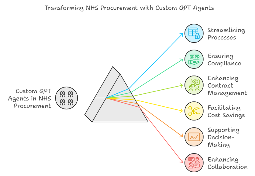 This article explores the substantial benefits that custom GPT agents can offer to the UK health procurement landscape, highlighting how they can assist procurement professionals in creating compliant frameworks, managing contracts, and driving cost savings. It will also delve into the various tools and services that these AI agents could provide to support NHS procurement teams in achieving these goals.